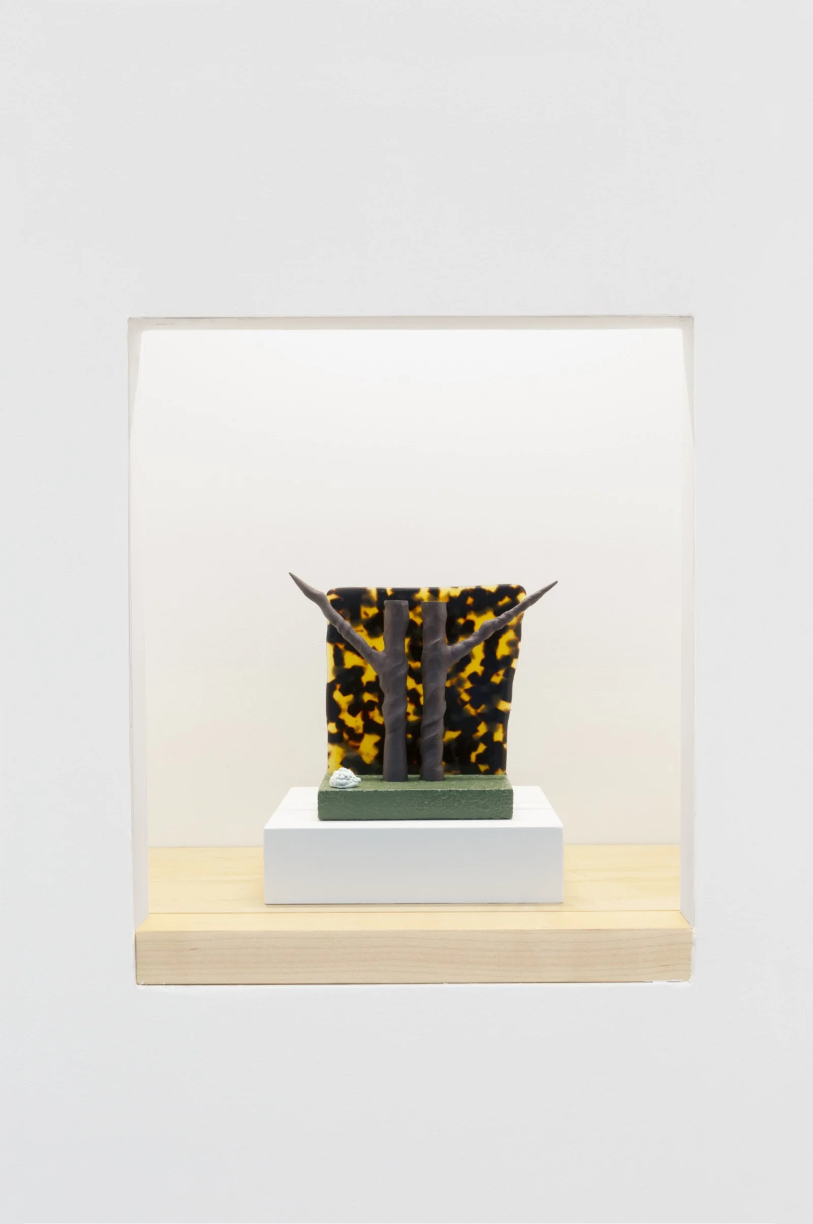 The exhibition features twenty-six new sculptures and fifteen related drawings. Most are no larger than six inches in any dimension, but at this scale, Nagle says, an object “can allude to a much bigger place, because it’s so small your imagination has to fill in all that space that’s not there.” Nagle makes his exquisitely crafted, jewel-like sculptures by hand, and although he works in traditional mediums like ceramic and porcelain, he combines them with other materials, including epoxy resin and catalyzed polyurethane, to create forms that cannot be achieved in clay alone. This merging of incongruous elements also extends to his titles, which are loaded with puns and wordplay: Egregious Philbin (2017), for example, or Quartersan (2018). “I’m trying to create a hybrid,” he explains. “You can’t quite put your finger on it.”